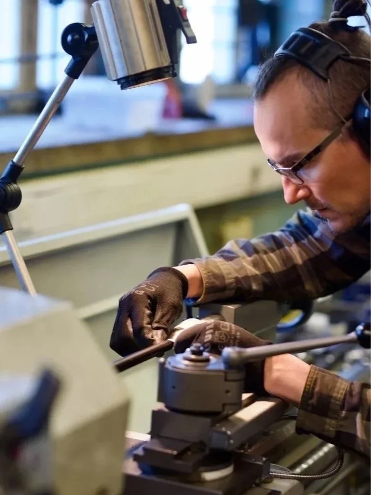 Neljä työntekijää, yksi robotti, yli 10 000 äänenvaimentajaa vuodessa.
